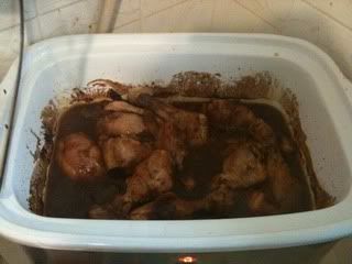 Ok, I know I'm a bit late today for my first part of my blog, I've had a pretty busy day. However, I did have 5 mins to throw some chicken legs in my slow cooker, sprinkle with some Paprika, and cover with a bottle of Smokey BBQ sauce. I then turned the slow cooker on low, and left the house for a few hours. This is what I returned to: